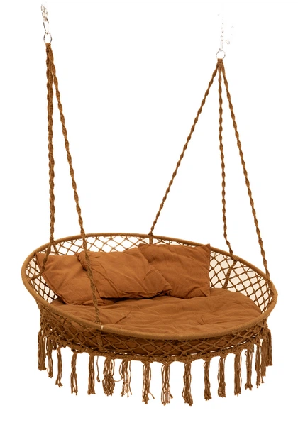 Крісло-гойдалка підвісна Плетена гойдалка двомісна 120 см WCG + м’яка подушка Коричнева