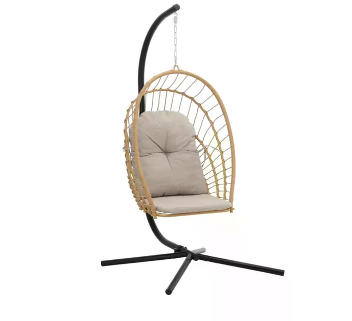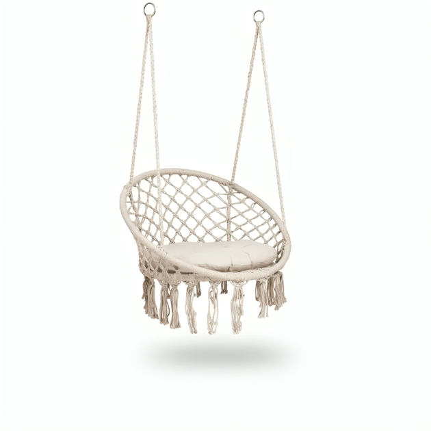 Садове крісло гойдалка гойдалки в стилі бохо підвісне плетене зі спинкою максимальне навантаження 150 кг (480255-Prob) Бежев