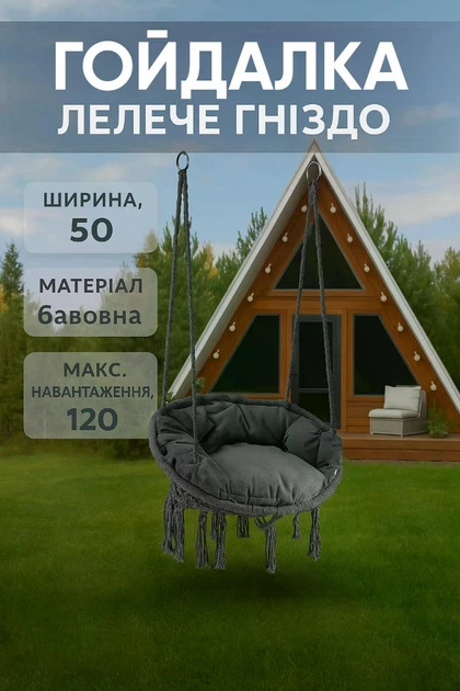 Підвісне крісло гойдалка з подушкою сіре BOHO 290010