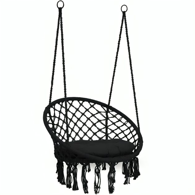 Садове крісло гойдалка гойдалки в стилі бохо підвісне плетене зі спинкою максимальне навантаження 150 кг (480254-Prob) Чорне
