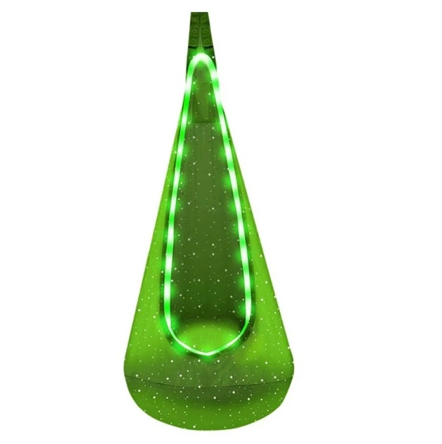 Підвісне крісло-груша з LED підсвічуванням Гойдалка гніздо з надувним пуфиком для дитячої кімнати та на вулицю Green