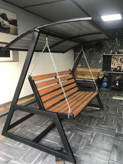 Металева садова гойдалка з навісом з дерев'яним сосновим сидінням 0130402