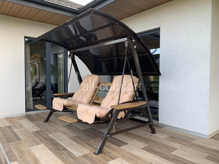 Гойдалка садова Техас Люкс з міні-баром і підставками для ніг 250 см коричнева