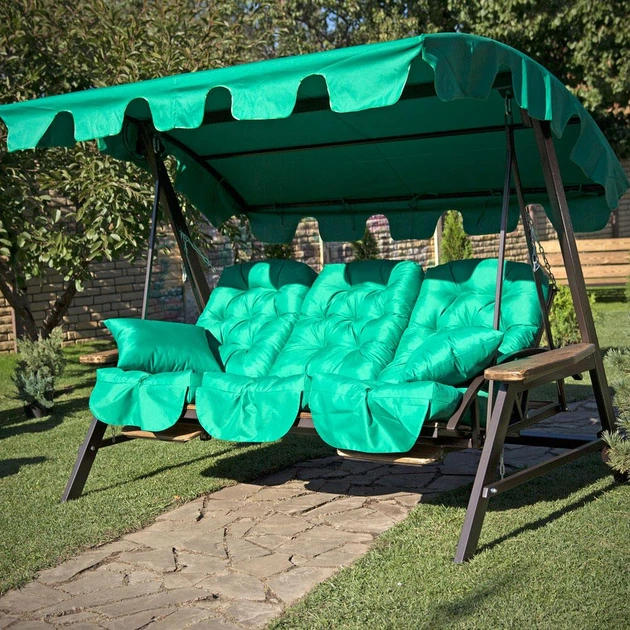 Гойдалка садова тримісна з підстаканниками VOLSO VS 0735 зелана 170x110x153 см із навісом для літнього відпочинку