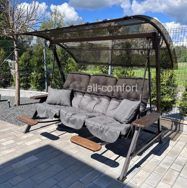Гойдалка садова Техас Люкс полікарбонат з міні-баром і підставками для ніг 250 см сіра