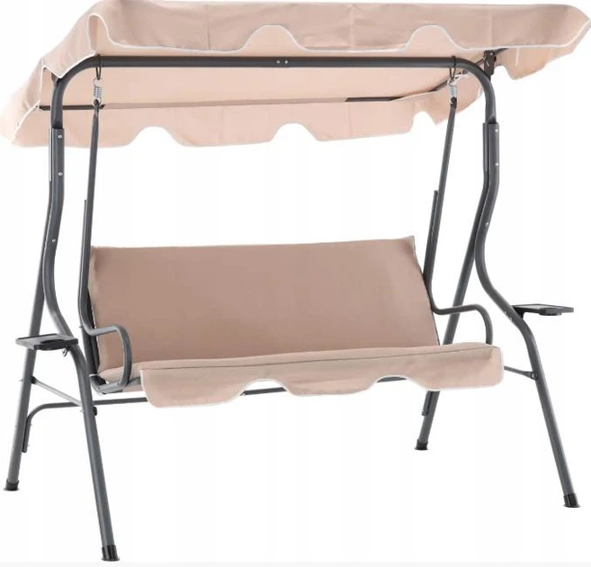 Гойдалка садова тримісна VOLSO VS 0735, бежева, з навісом та підсклянниками, 170x110x153 см, для дачі, тераси, подвір’я