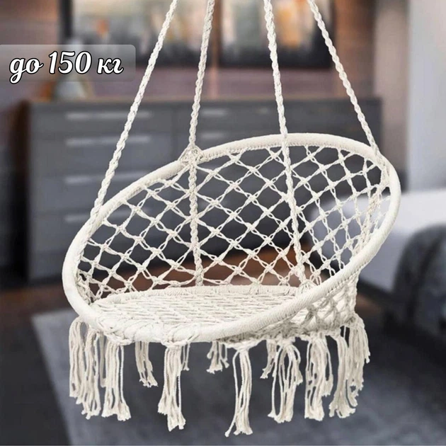 Садове підвісне крісло - гойдалка Бохо до 150 кг Бежеве Gordon Beige бразильське Boho