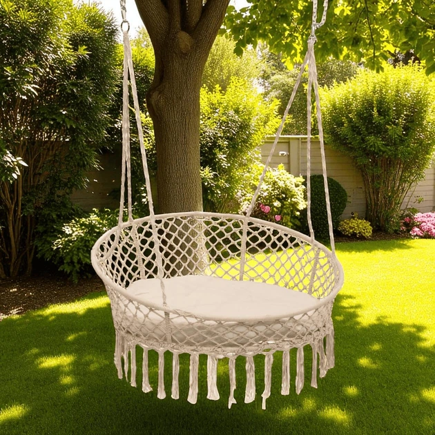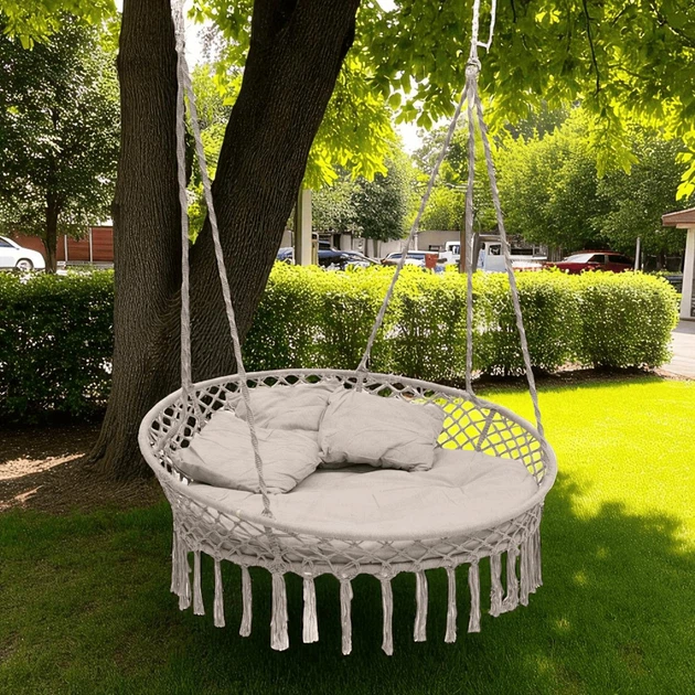 Садове підвісне крісло - гойдалка Бохо до 150 кг Бежеве GardenLine Beige бразильське Boho