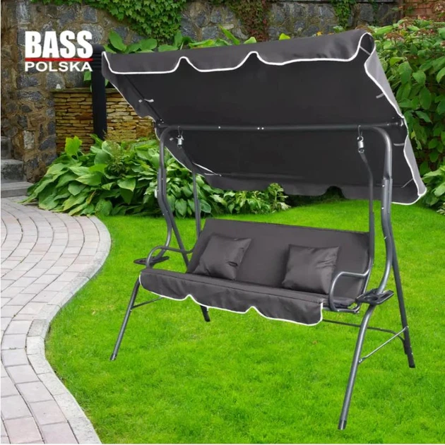 Садова гойдалка тримісна Bass Polska BH 10030 антрацит 170110153 см з подушками та підстаканниками