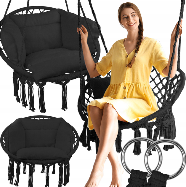 Гойдалка підвісна гніздо з подушкою MalTec 60 см 150 кг чорна