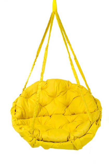 Підвісне крісло гамак до 250 кг d120 см із круглою подушкою жовтого кольору без підставки для дому та саду