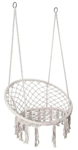 Плетена підвісна кругла гойдалка-гніздо 80 см зі спинкою до 150 кг TOGO Cream міцна конструкція та подвійне плетення для тер