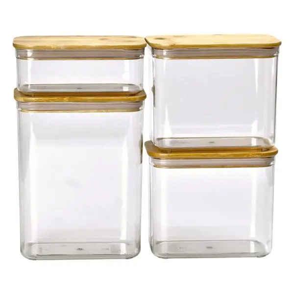 Банки для сипучих продуктів набір з 4 шт пластикові з бамбуковими кришками 0.7 л /1.7 л /2.7 л /3.7 л HP-1301