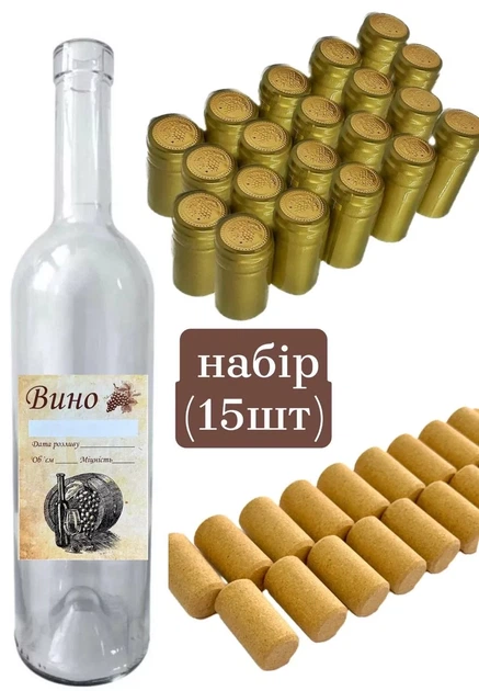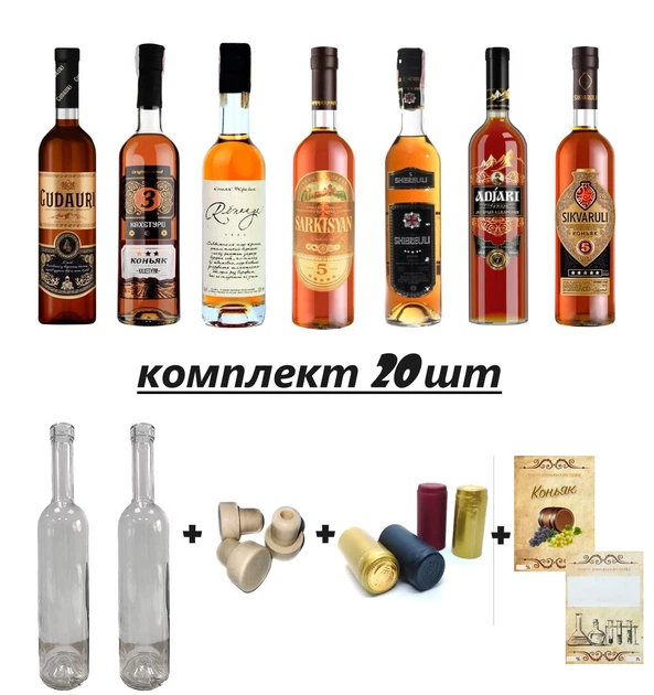 Набір для розливу коньяку Пляшка, Корок, Ковпачок, Наклейка - 20 шт
