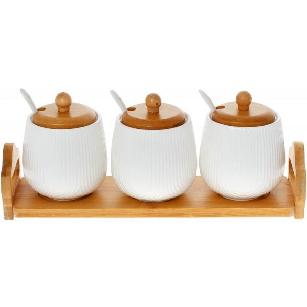 Набір банок з ложками Nouvelle Home Violal 3 банки 350мл для сипучих продуктів на підставці (176866)