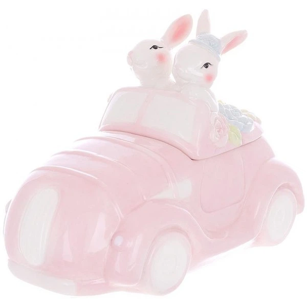 Банку керамічна "Зайчики в Машині" для печива та солодощів 1700мл, рожева (244781)