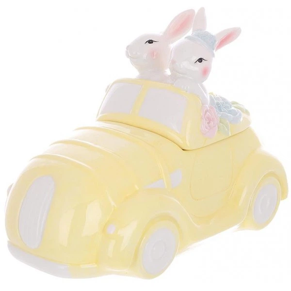 Банку керамічна "Зайчики в Машині" для печива та солодощів 1700мл, жовта (244782)
