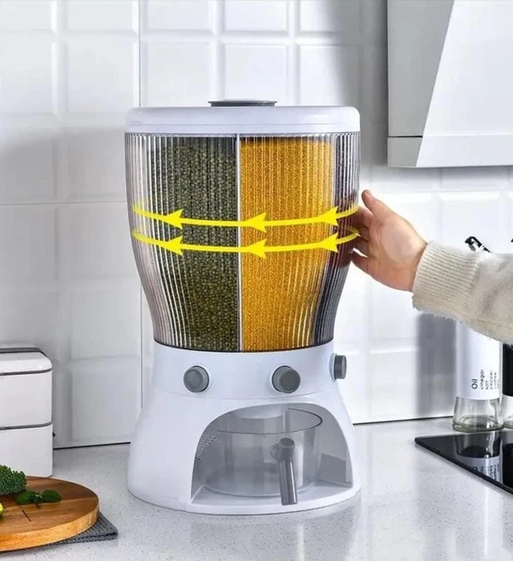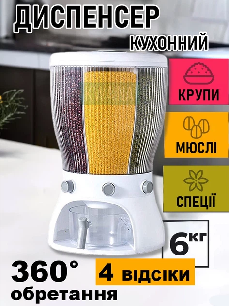 Диспенсер органайзер ємність для круп з дозатором та знімними перегородками, що обертається на 6 кілограм для сипучих продук