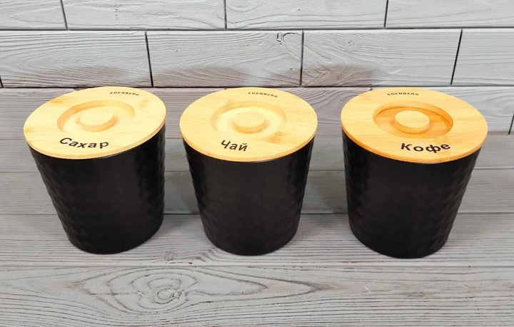 Набір банок для сипучих продуктів Edenberg EB-146 з дерев'яною кришкою 1400 мл (EB-146)
