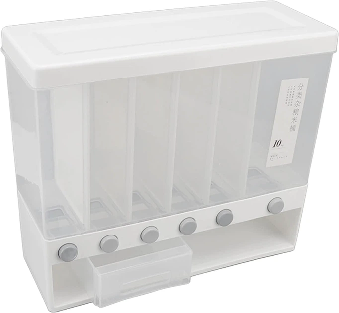 Контейнер диспенсер ємність прямокутна з дозатором для сипких круп з відсіками 6 шт 14х38х32 см (476069-Prob) Білий