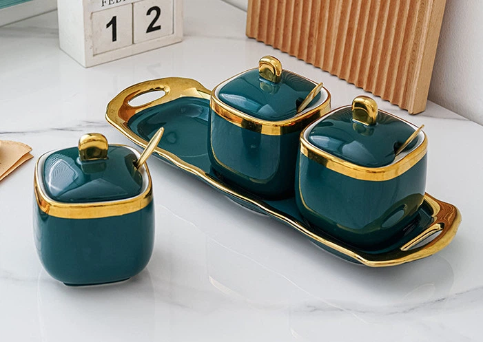 Набір банок на підставці для зберігання 6864 7 предметів зелений