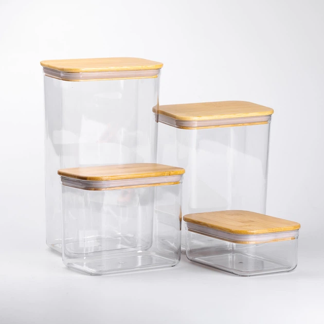 Набір пластикових банок для сипучих продуктів з бамбуковими кришками (4 шт)
