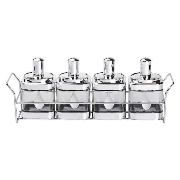 Набір банок для сипучих продуктів Yiwu 4 штуки 350 мл скляні на металевій підставці (HP-1336)