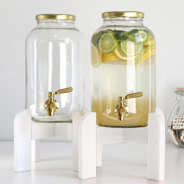 Лимонадниця скляна 4,25л (лимонадник) з краном із нержавіючої сталі кольору золото та білою підставкою (425NG-PHR-B)