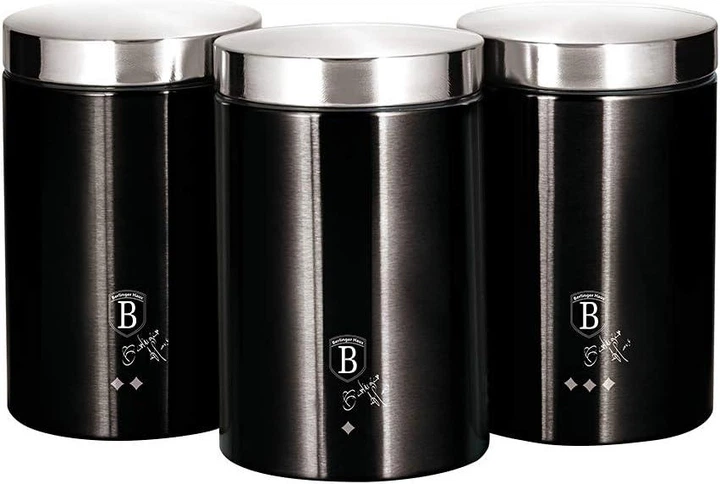 Набір контейнерів для зберігання цукру, кави, чаю та сипучих 11х17,8 см Berlinger Haus Black Silver Collection нержавіюча ст