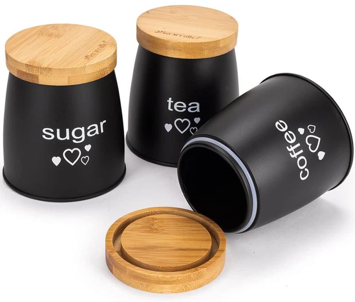Набір банок для сипучих продуктів Tea Coffee Sugar із чорним пудровим покриттям