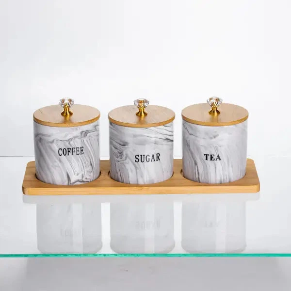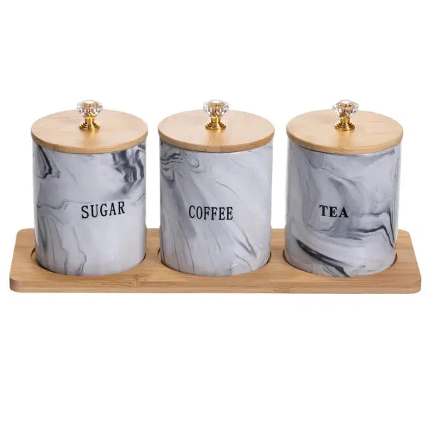 Набір 3 банки Merceyl "Sugar, Tea, Coffee" по 750мл, кераміка з дерев'яними кришками (109252)