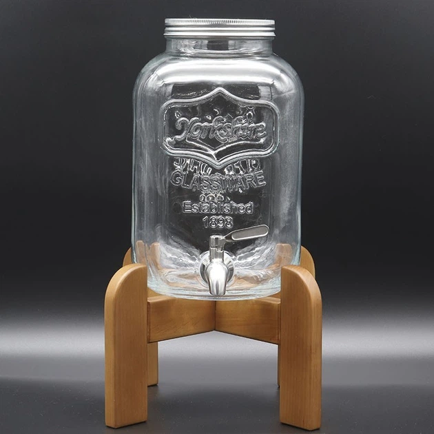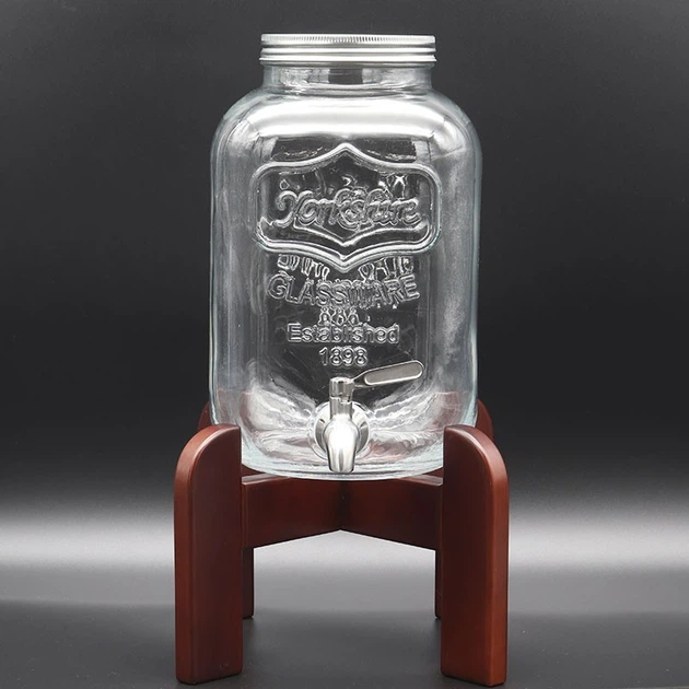 Лимонадниця скляна 4л Yorkshire (лимонадник) з краном із нержавіючої сталі та коричневою підставкою (Yor4N-PHR-К)