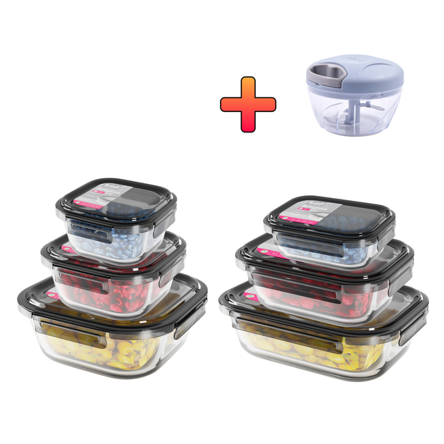 Набір скляних контейнерів Krauff + ПОДАРУНОК: чопер мультифункціональний подрібнювач