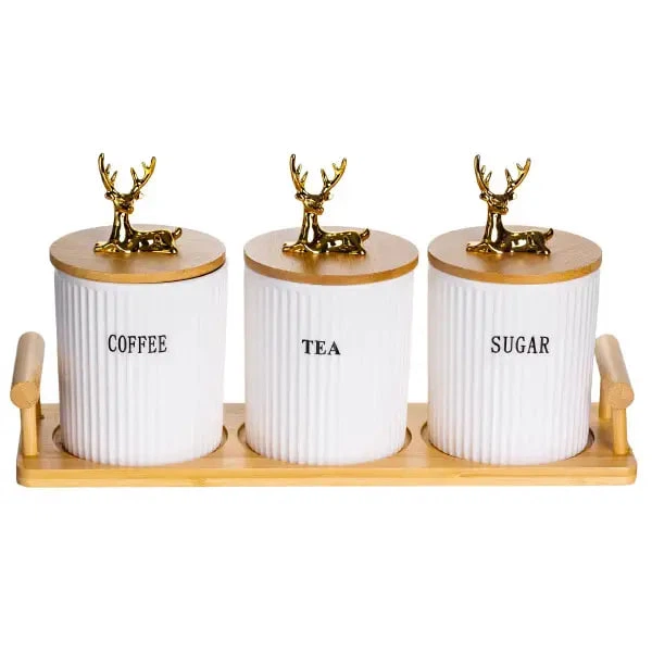 Набір банок для зберігання 3 штуки по 400 мл із кришками на підставці(SCT-650)(WB)
