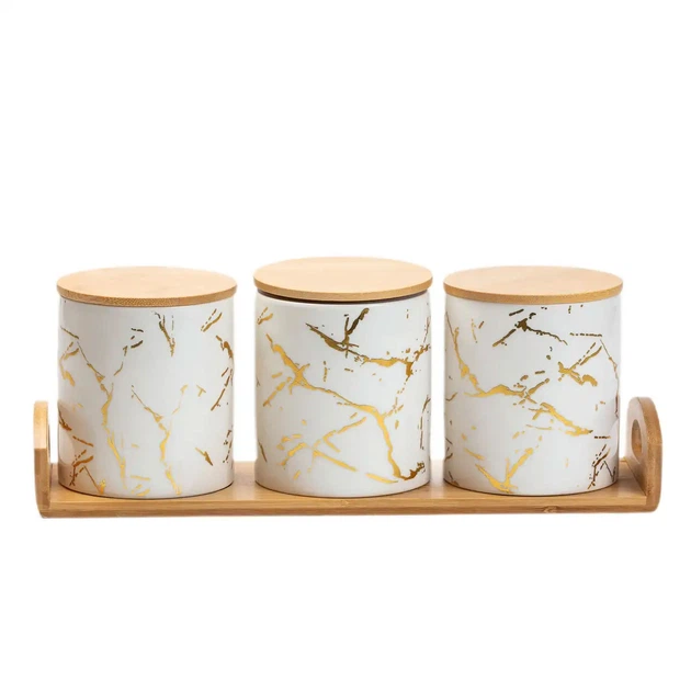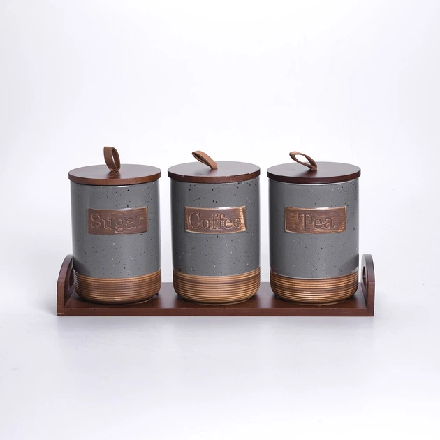 Набір фарфорових банок для сипучих 3 шт. 800 мл з кришками Сірий контейнер для зберігання продуктів для кухні (525221)