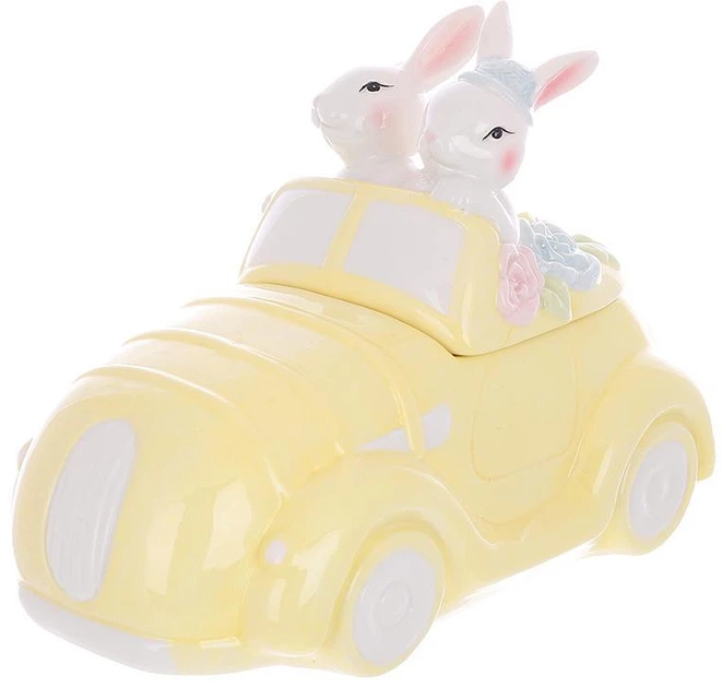 Банку керамічна "Зайчики в Машині" для печива та солодощів 1700мл, жовта