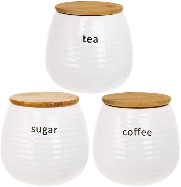 Набір 3 банки Merceyl "Sugar, Tea, Coffee" по 750мл, кераміка з дерев'яними кришками