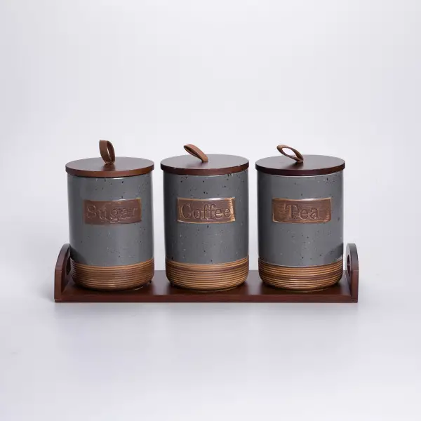 Набір 3 банки Merceyl "Sugar, Tea, Coffee" по 1000мл, кераміка з дерев'яними кришками