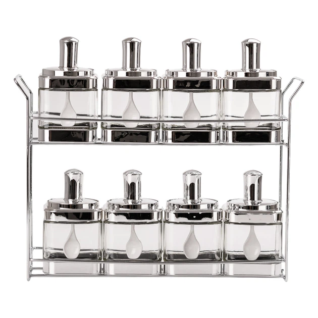 Ємності для сипучих продуктів TS Kitchen, набір із 8 шт, скляні з кришкою та ложкою, хром
