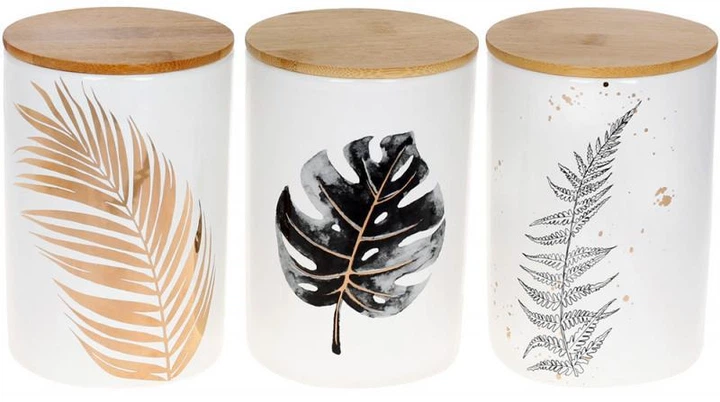 Набір 3 керамічні банки "Гавайї" 650мл з бамбуковими кришками, білий із золотом