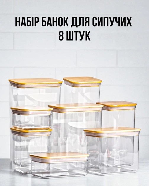 Набір банок для сипучих продуктів 8 штук ємності з бамбуковою кришкою