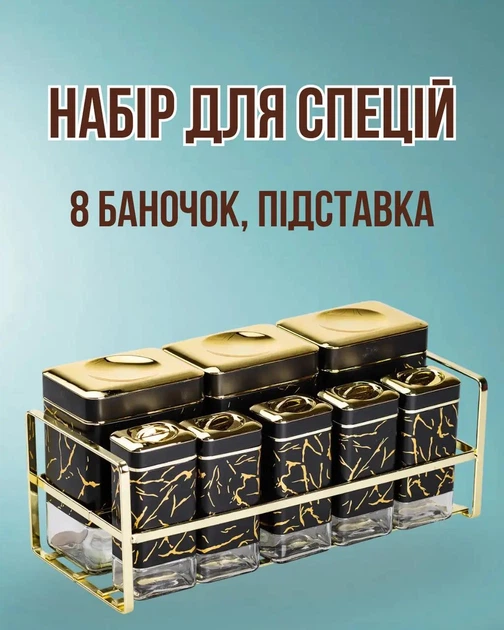 Ємність для сипучих продуктів, Набір для приправ та спецій на підставці 8 штук з кришками, Чорний, Аксесуар для кухні