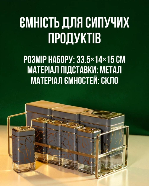 Банки для сипучих продуктів 7 штук по 200 мл та 500 мл на бамбуковій підставці HP1231