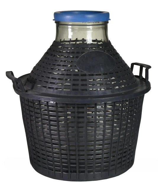 Бутель скляний Ambrosio 15 л із широким горлом у пластиковому кошику, кришка та ручки ПР645115