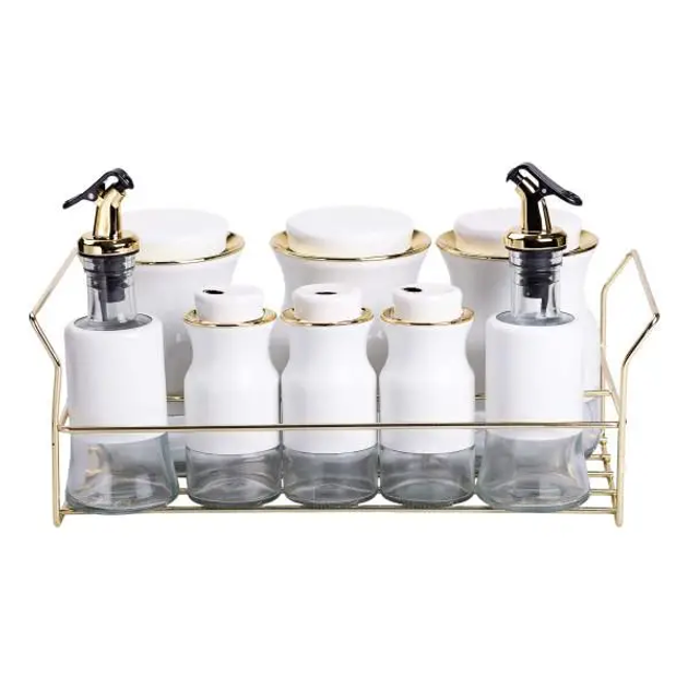 Набір для спецій та рідких текстур на золотистій металевій підставці(HP-1360W)(WB)
