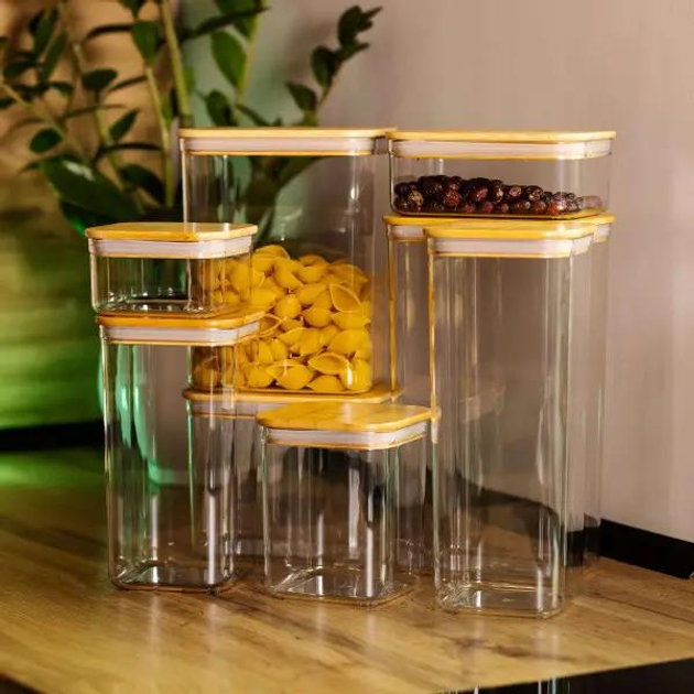 Набір банок для сипучих продуктів 8 штук ємності з бамбуковою кришкою HP-1303