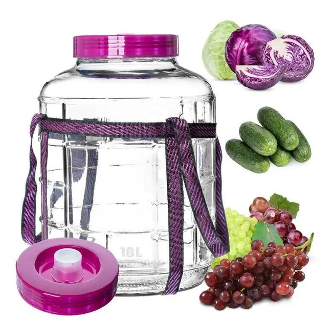 Пляшка скляна 18 л з гідрозатвором для приготування вина та настоянок, соління