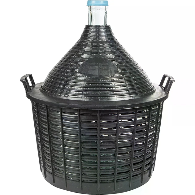 Скляний бутель у пластиковому кошику, 25 л для зберігання та бродіння напоїв