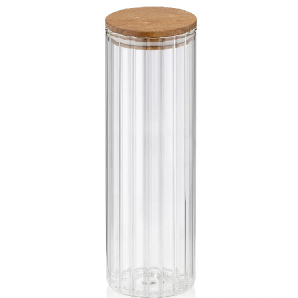 Ємність для зберігання сипучих KELA Dorothea, Ø9 см, 1.5 л (15285) KELA Dorothea – елегантна ємність для зберігання з фактурним дизайном стане ідеальним вибором для тих, хто цінує якість та естетику. Ідеально підходить для зберігання сухих продуктів, таких як макарони, рис або кавові зерна. Ємність для зберігання Dorothea виготовлена з міцного боросилікатного скла. Вона не лише прикрасить вашу