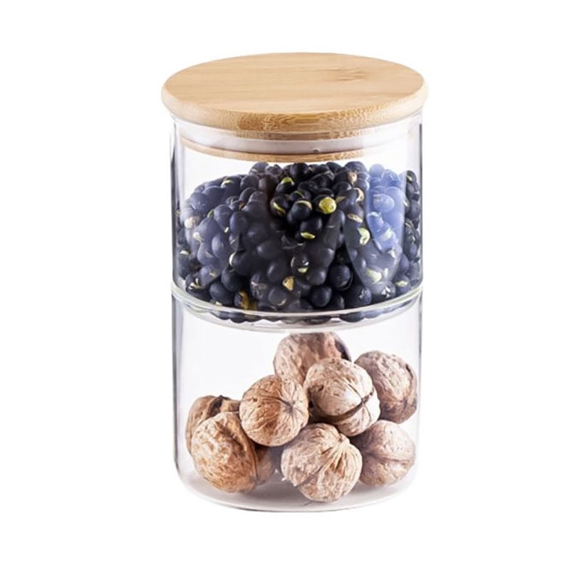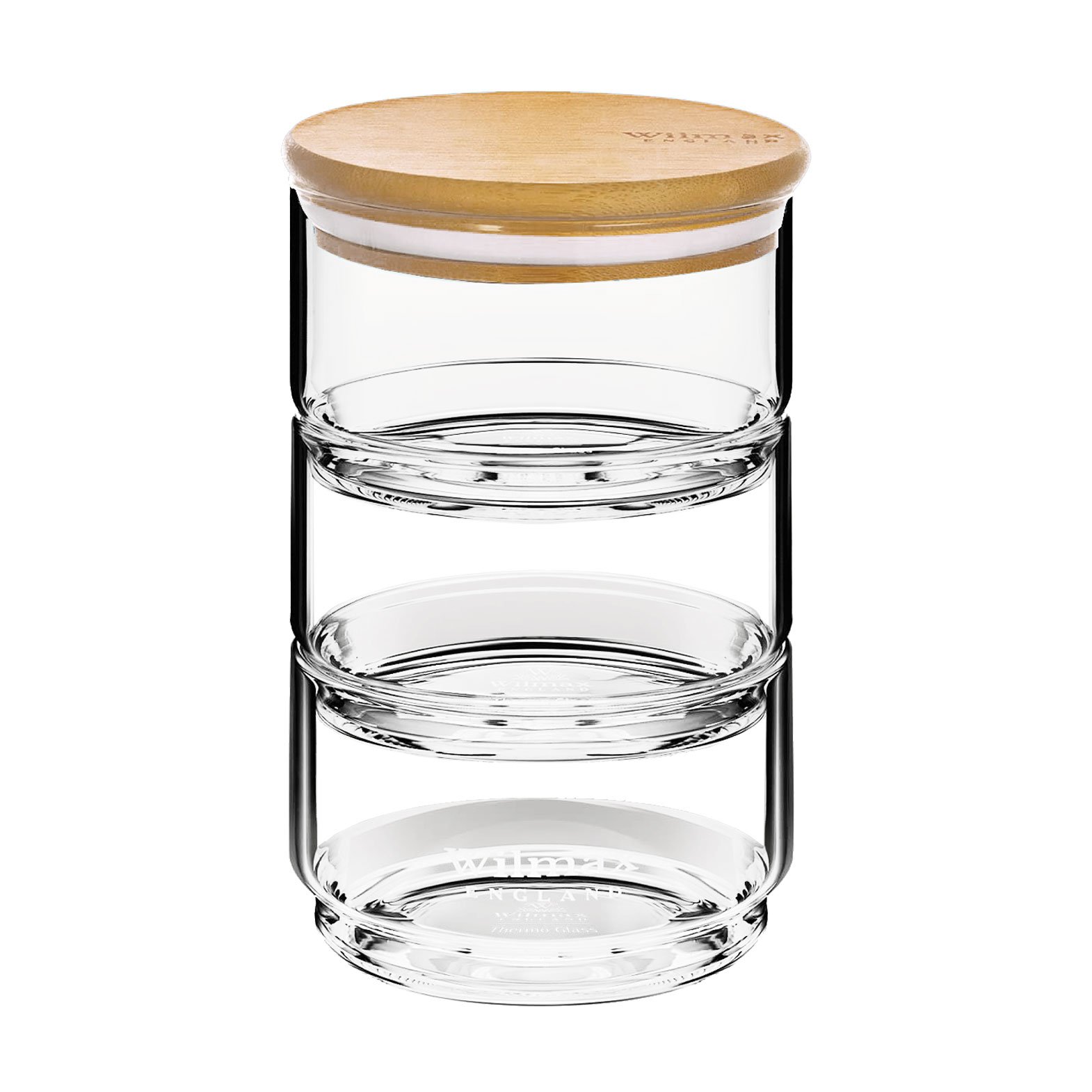 Ємність для зберігання Wilmax Thermo скляна, 3-х ярусна, з бамбуковою кришкою, 12*20 см (410912)